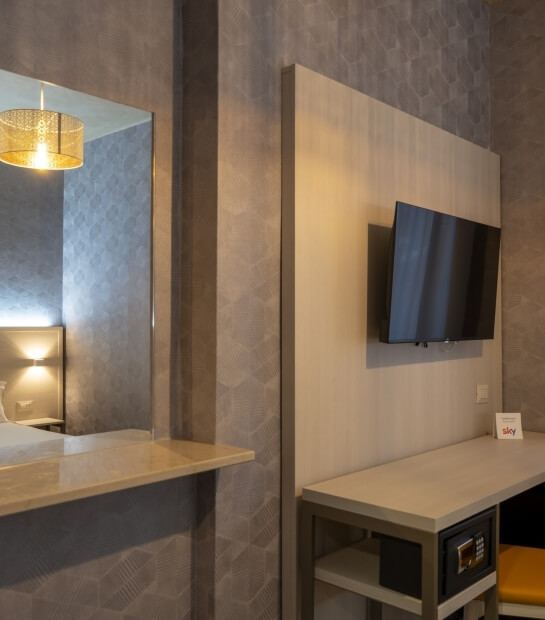 Arredate con elementi in metallo, lineari e molto raffinati accostati ai colori caldi delle finiture del legno le moderne Superior offrono: connessione internet Wi-Fi, minibar, tende oscuranti, cassaforte digitale, Tv satellitare 40” con canali Sky e climatizzatore.
